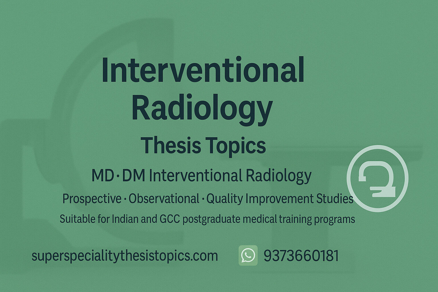 View Interventional Radiology TopicsThe superspeciality subjects listed on this page are intended to support medical research proposals (بحث طبي), study protocols (بروتوكول بحث), thesis synopses, and dissertation planning for DM, MCh, and fellowship trainees working across UAE and GCC healthcare systems. These research areas align with clinical training requirements, case mix, and academic standards followed in DHA, MOH, SEHA, and major private hospitals across the Gulf region.